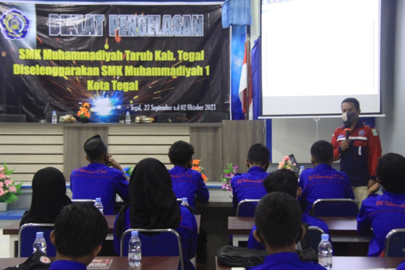 TEGAL – SMK Muhammadiyah 1 Kota Tegal (SMK Mutu) yang merupakan Sekolah Pusat Keunggulan melatih 19 siswa SMK Muhammadiyah 1 Tarub (SMK Murub) dalam Diklat Teknik Pengelasan yang dibuka Waka Humas dan Kurikulum SMK Mutu Neneng Fitria Sari ST mewakili Kepala SMK Mutu Drs Riswanto MM di Aula SMK Mutu, Senin (27/9).