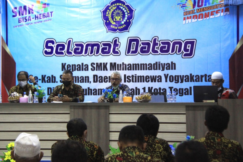 TEGAL - Sebanyak 15 Kepala SMK Muhammadiyah dari Kabupaten Sleman berkunjung SMK Muhammadiyah 1 (SMK Mutu) Kota Tegal, Jumat (24/12). Rombongan diterima Kepala SMK Mutu Drs Riswanto MM beserta para wakil kepala dan dewan guru SMK Mutu di Aula SMK Mutu, Jalan Perintis Kemerdekaan, Jumat (24/12).